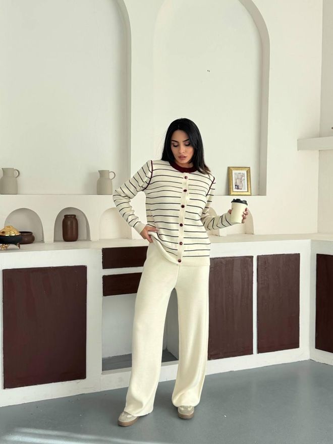 Un ensemble qui marie élégance et allure effortless grâce à sa coupe fluide et ses rayures intemporelles.